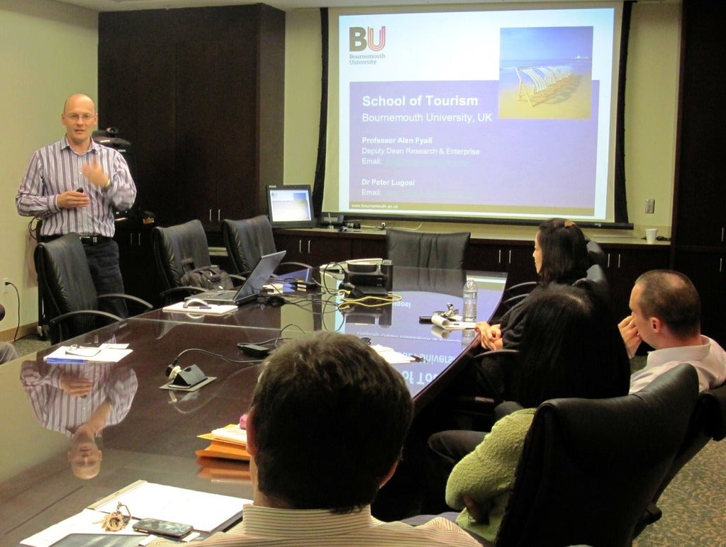 Dr. Fyall, Professor in Tourism and Deputy Dean of Research & Enterprise and Dr. Lugosi, Senior Lecturer, focused on collaboration between the two institutions. They discussed future research in the areas of tourism, hospitality, leisure and events, and the development of academic cooperative programs such as student exchange, study abroad and faculty exchange.