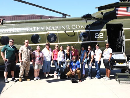 The trip highlights included a flight in a CH-46 Sea Knight helicopter from Marine Helicopter Squadron One (HMX-1). HMX-1 is the unit responsible for the transportation of the United States president. In addition, the group attended a Marine Corps Sunset Parade at Arlington National Cemetery and viewed performances by the Commandant’s Own Drum and Bugle Corps and the Marine Corps Silent Drill Platoon.