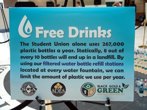 Filtered water is stationed at all water fountains in the Student Union.The set up was on display for two weeks in February.