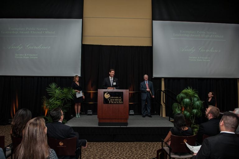 The University of Central Florida recognized U.S. Sen. Bill Nelson and Florida Sen. Andy Gardiner among others Wednesday night with 2016 Public Service Leadership Awards.