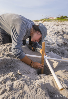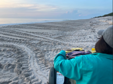 Merope is interested in the effects of climate change to sea turtle populations, specifically focusing on nests laid later in the season that are impacted by cooler temperatures, increased rainfall, and major storm events.